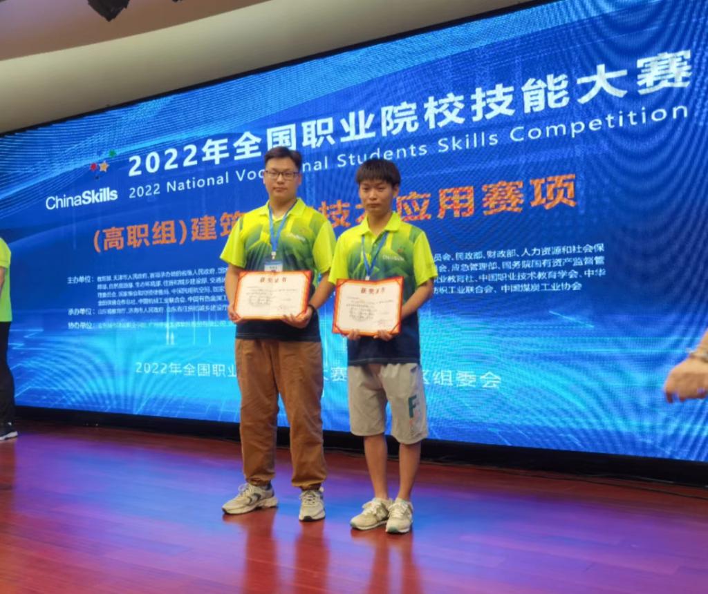 8月25日,2022年全国职业院校技能大赛--(高职组)建筑装饰技术应用赛项在山东济南开赛,共有来自全国近60所院校的团队参加比赛。我院建筑工程系李小光、崔紫阳两位同学在领队匙静、指导教师朱靓、丁晓静的带领下,经过激烈角逐,取得国家级团体三等奖的优异成绩。